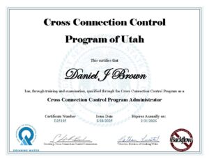 - STATE OF UTAH CERTIFIED BACK-FLOW TECHNICIANS